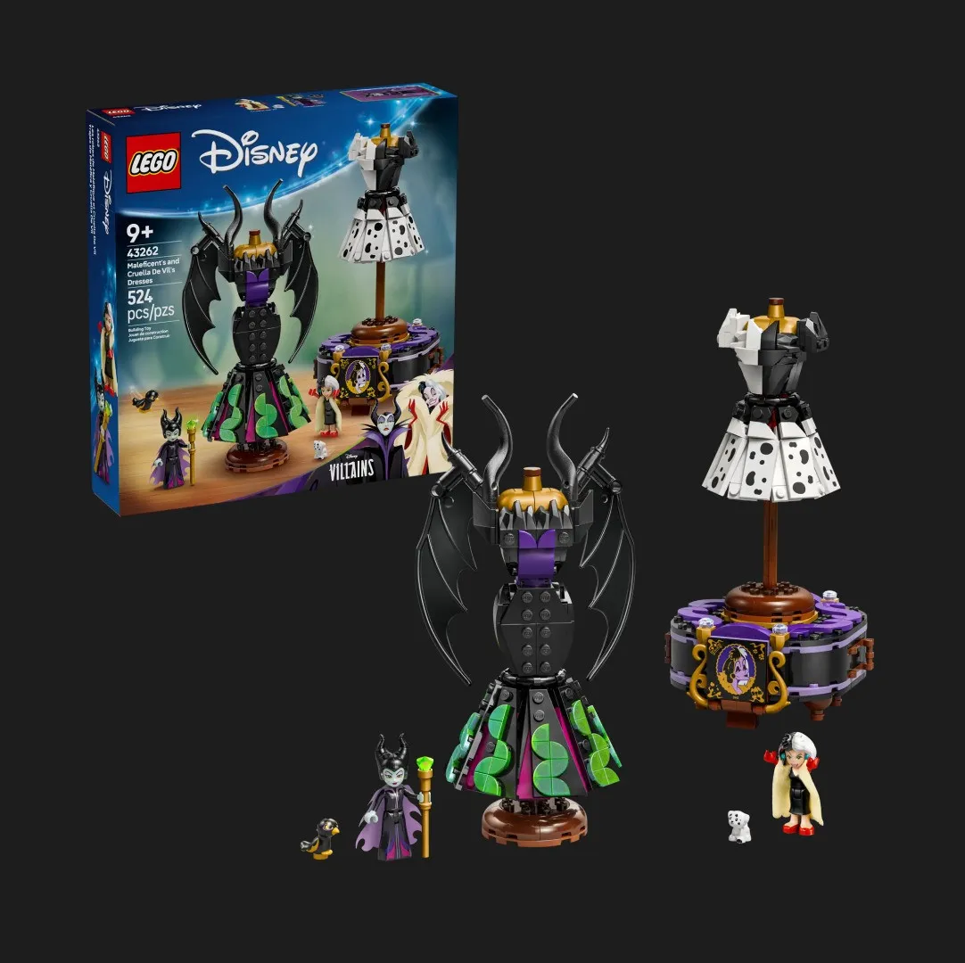 В наборе LEGO Disney Maleficent's and Cruella De Vil's Dresses основной акцент сделан на узнаваемых платьях персонажей. Образ Малефисенты передаёт её элегантность и сдержанный стиль. Платье Круэллы де Виль выделяется контрастами и смелым дизайнерским подходом. Каждая модель выглядит выразительно и продуманно. Именно эти детали делают набор особенно привлекательным для поклонников Disney.