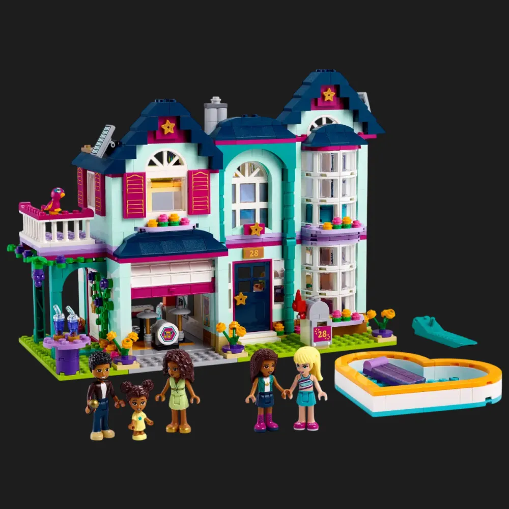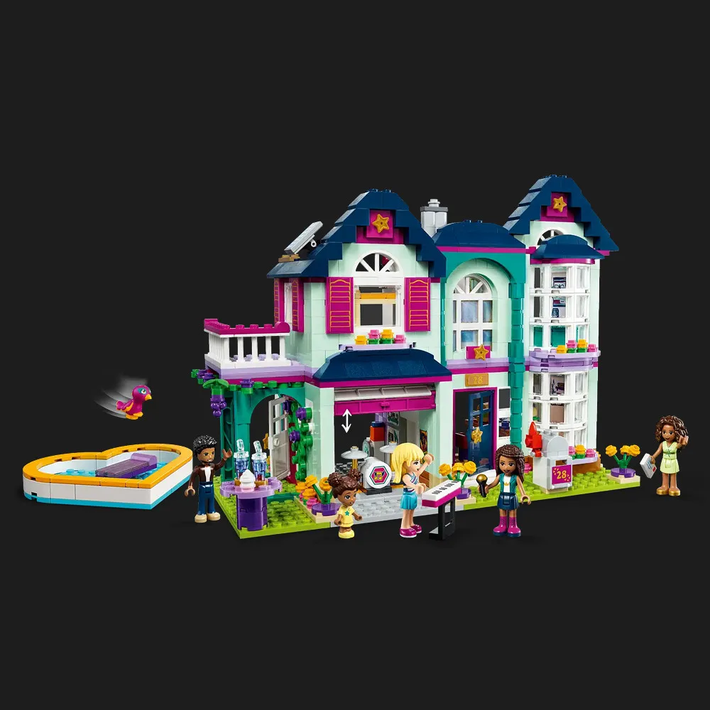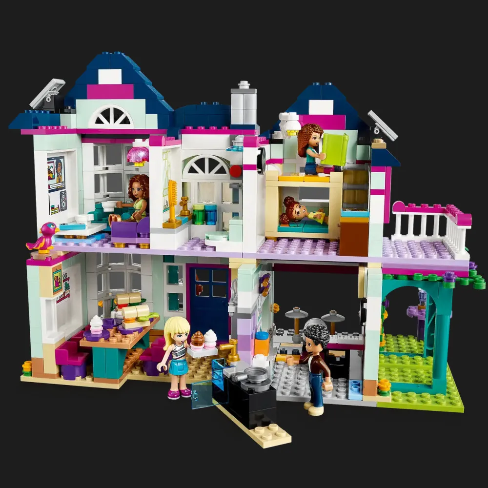 Набор LEGO Friends Andrea’s Family House — это современный, многоэтажный дом, поражающий детализацией и продуманностью каждого элемента. От крутой музыкальной студии на чердаке до просторной кухни и уютной гостиной — всё сделано так, чтобы ребёнок мог придумывать собственные истории, сценарии и воплощать в жизнь свои фантазии. Особую атмосферу создают любимые персонажи из серии Friends, в том числе сама Андреа, её родители, сестра Лиз и любимый пёсик. Каждая комната — это новое пространство для приключений, игры и развития социальных навыков.