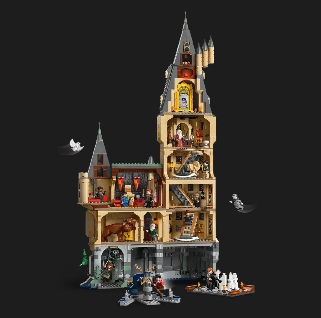 • Башня замка Hogwarts в этом наборе LEGO Harry Potter из 2,135 деталей имеет высоту более 67 см, ширину 36 см и глубину 14 см.