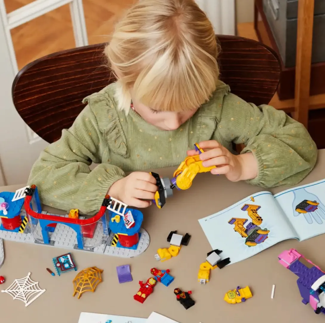 LEGO Marvel Team Spidey Web Spinner Headquarters не только развлекает, но и помогает развивать важные навыки. Во время сборки дети улучшают координацию рук и глаз, а также внимание к деталям. Каждая игра способствует развитию воображения и креативного мышления, позволяя придумывать новые миссии и истории. Набор поощряет коллективную игру, формируя коммуникативные навыки и командную работу. Это отличная возможность учиться через игру и фантазировать без ограничений.