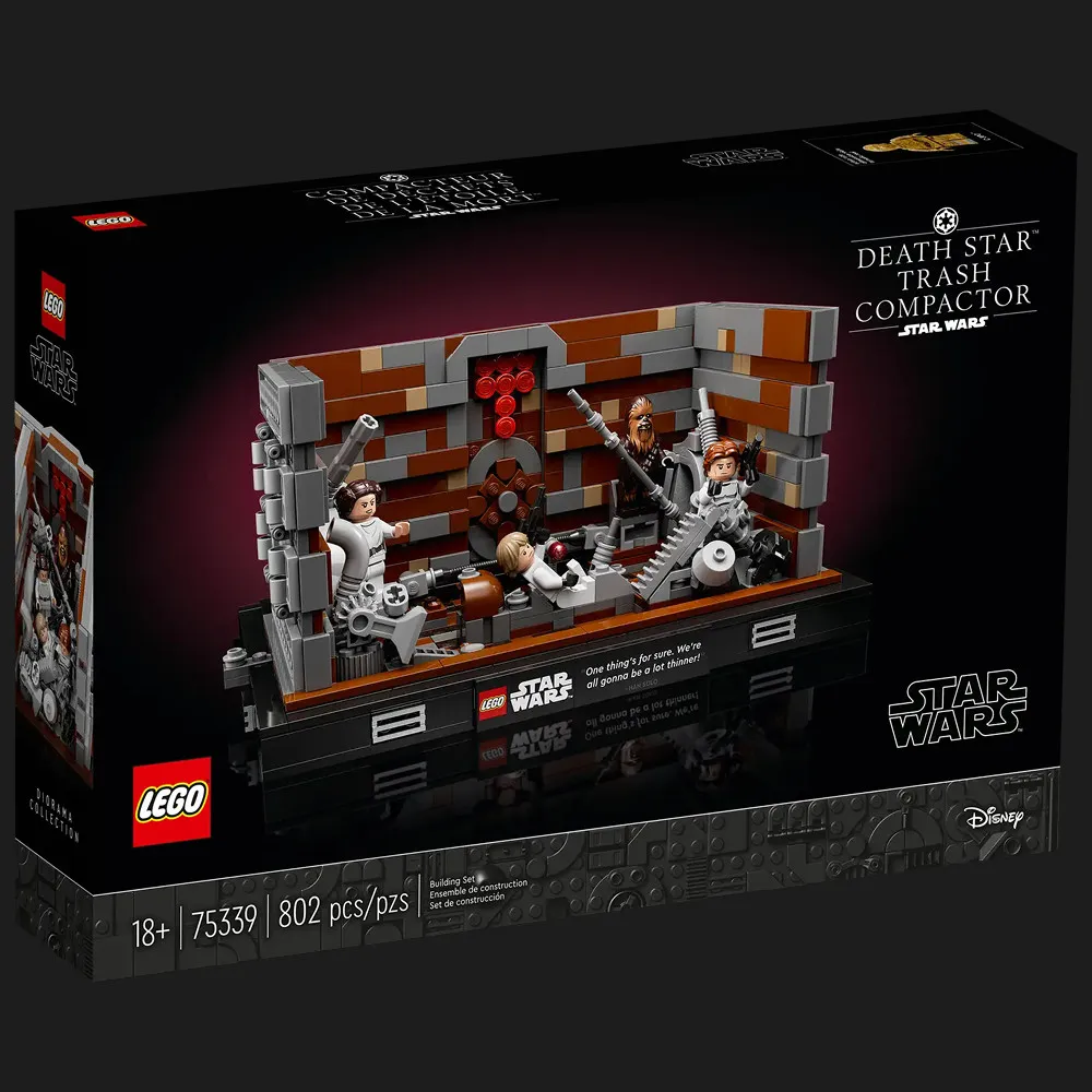 • Аутентичные детали — Включает движущиеся стены, голову дианоги, панель управления компактором и табличку с надписью Хана Соло «Одно можно сказать точно. Мы все станем гораздо стройнее».
