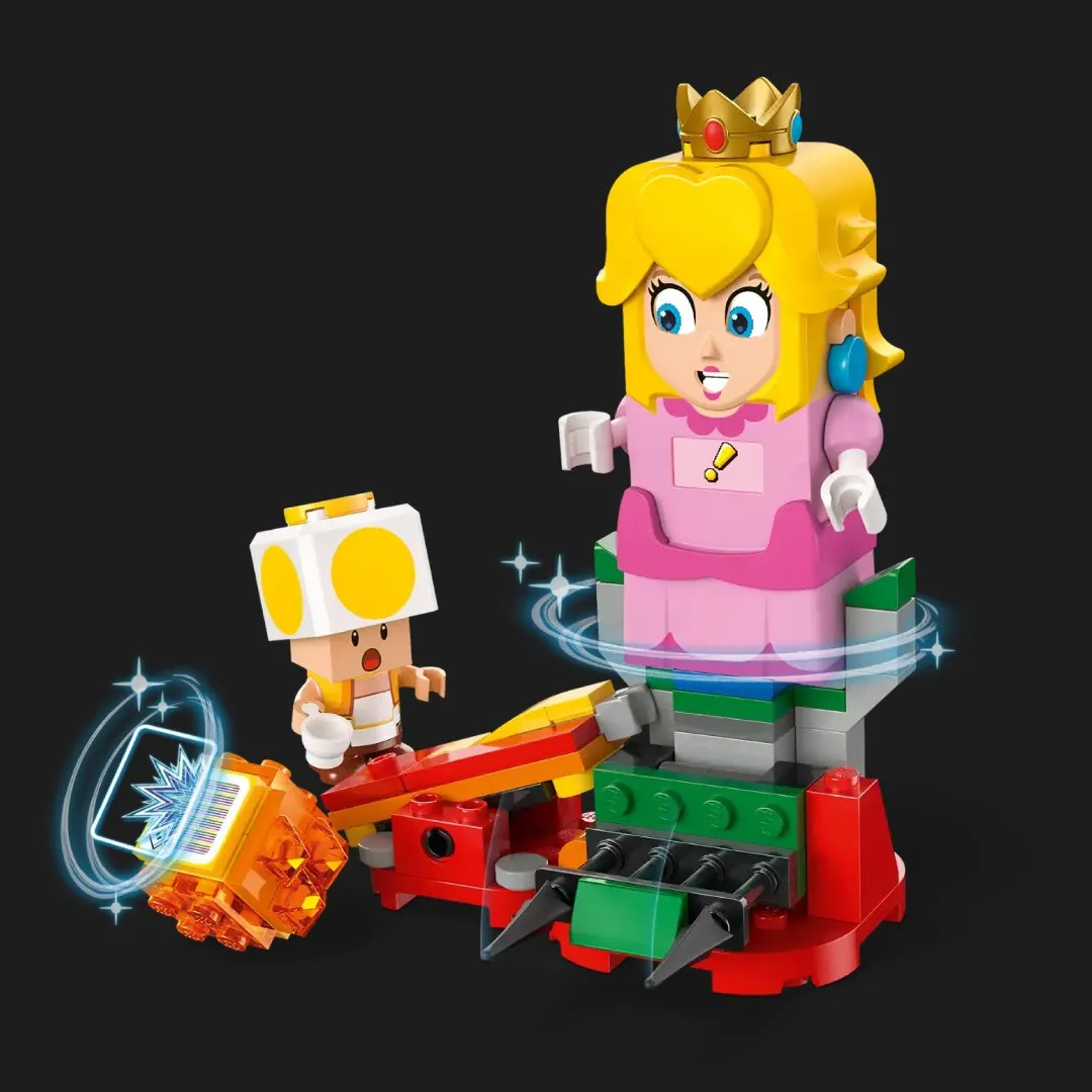 LEGO Peach оживає прямо на твоїх руках — вона реагує на стрибки, спеціальні блоки та колекційні елементи, створюючи ефект повної участі у грі. Діти можуть комбінувати різні рівні та додавати перешкоди, монети та бонуси для нових сюжетів. Звукові та світлові ефекти роблять кожну гру унікальною і захопливою. Кожен квест із Принцесою Піч стає інтерактивною історією з пригодами, сюрпризами та веселими моментами. Це чудовий інструмент для розвитку стратегічного мислення та фантазії.