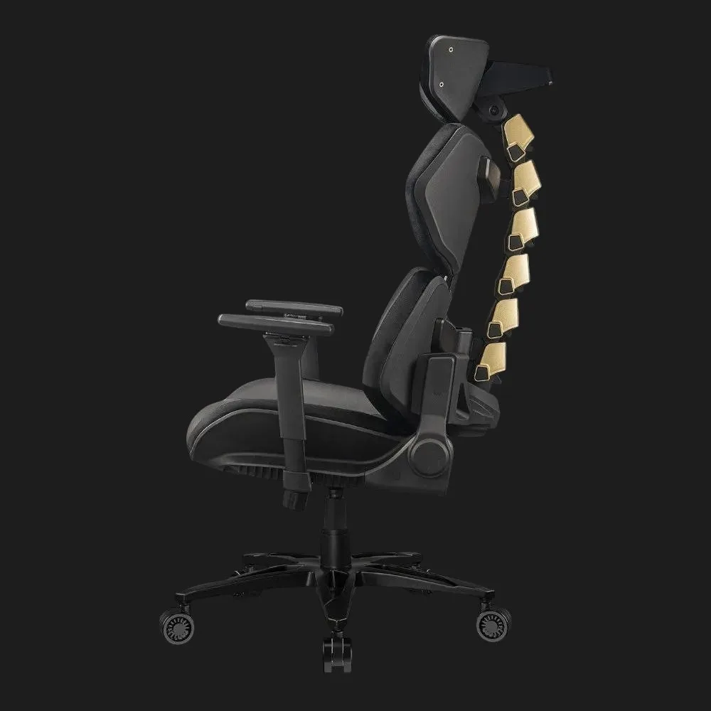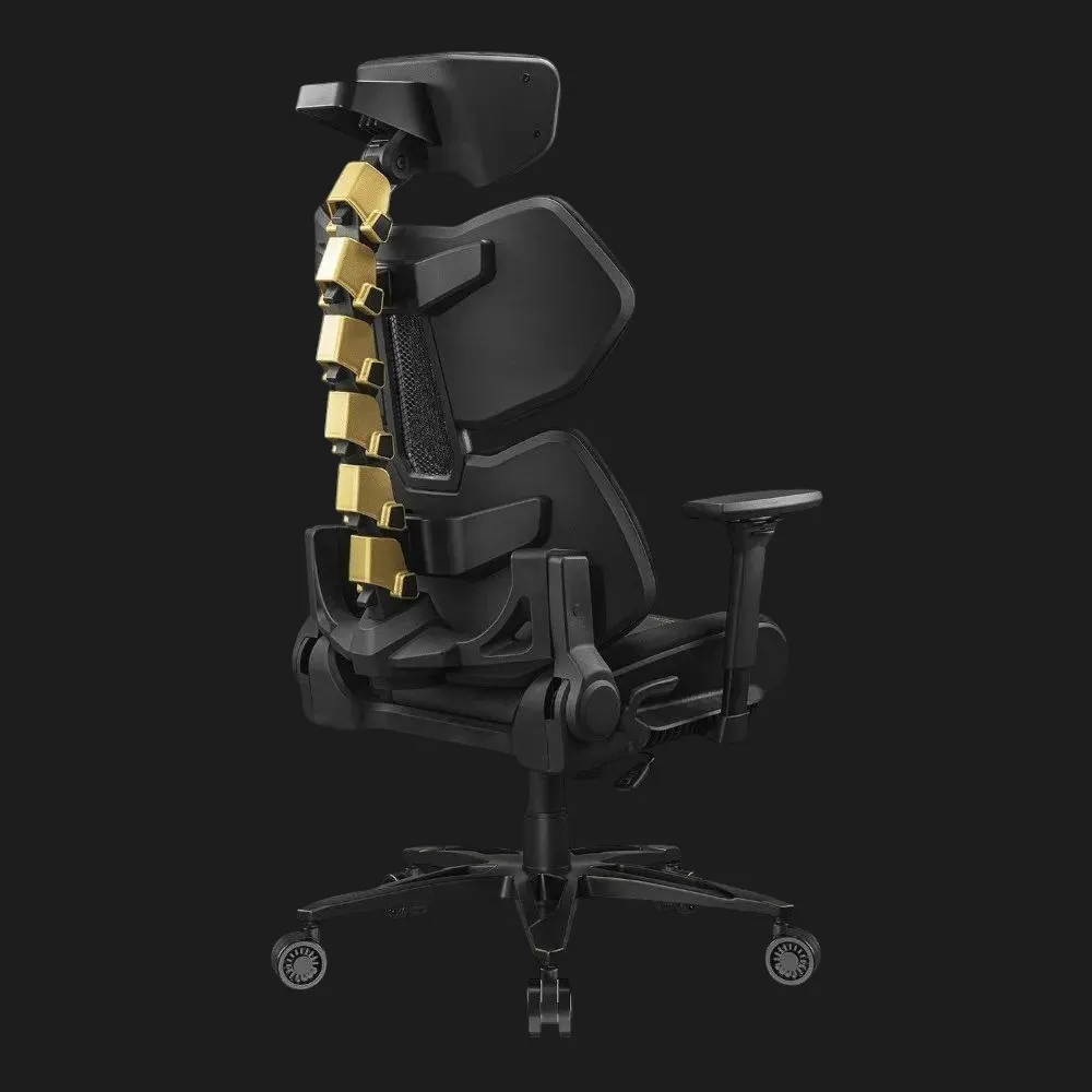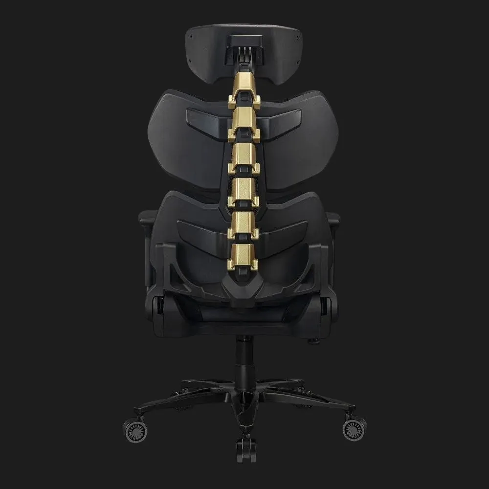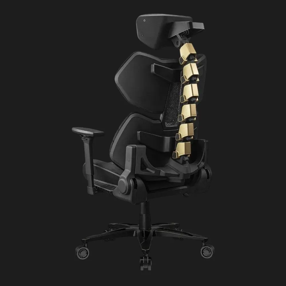 Cougar Terminator Elite в черном с золотистыми акцентами — это синтез агрессивного современного стиля и роскошной функциональности. Центральная конструкция, имитирующая второй позвоночник, отличается золотистыми металлическим оттенком, подчеркивая эстетику вашего сетапа. Ровный контур сиденья и спинки, а также комбинация экокожи Hyper-Dura и бархатных вставок создают ощущение премиального кресла. Именно в Ябко это кресло — выгодная покупка, поскольку здесь стиль встречается с комфортом по привлекательной цене.