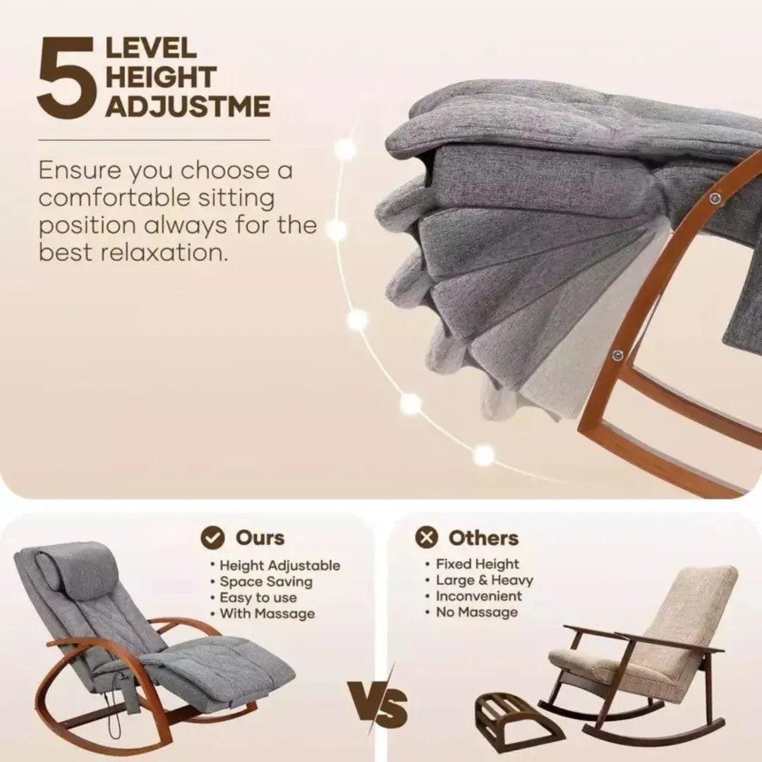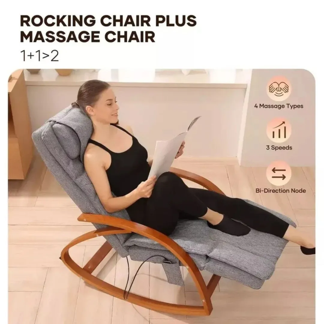 Это кресло-качалка работает там, где чаще всего накапливается напряжение — в спине, плечах и шее. Его массажные функции продуманы так, чтобы устранять усталость без лишних настроек. Всё интуитивно и понятно: просто сядь и позволь механизму делать свою работу. Равномерные волны массажа поддерживают тело, снимая напряжение и стимулируя кровообращение. С каждым сеансом ты ощущаешь, как мышцы расслабляются, а чувство лёгкости распространяется по всему телу.