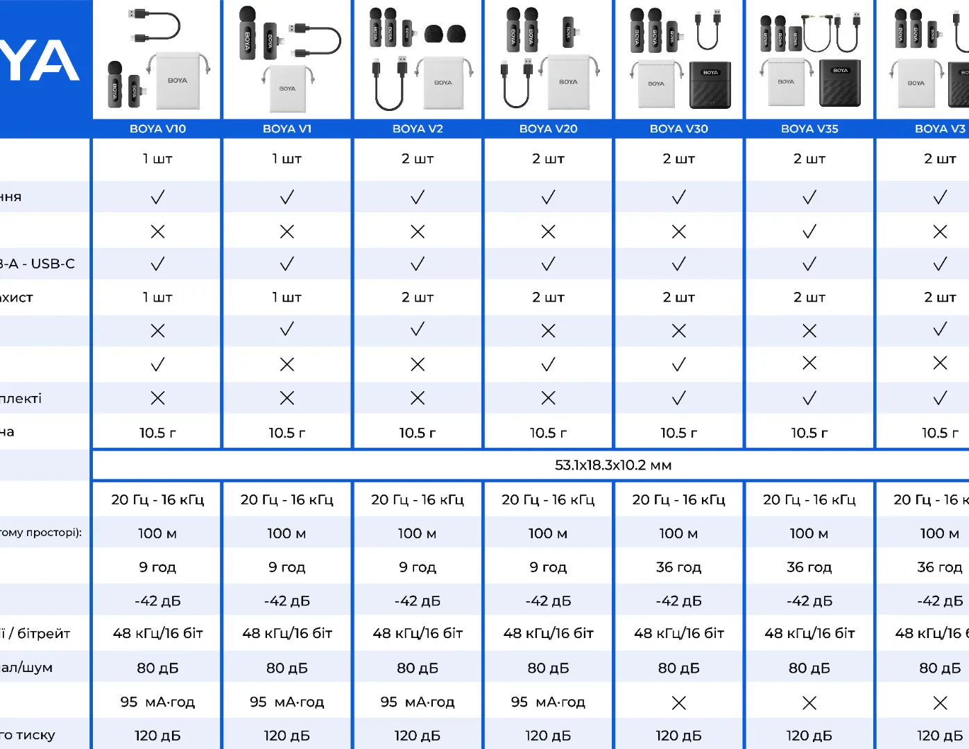 BOYA BY-V — это беспроводная микрофонная система, созданная для тех, кто регулярно записывает видео или аудио на смартфон, планшет или другое портативное устройство. Она помогает получить чистый и понятный голос без сложного оборудования и кабелей, что особенно важно для мобильного контента. Такой формат подходит для блогеров, журналистов, преподавателей и всех, кто работает с видео в движении. Система сочетает компактность, простое подключение и стабильную передачу звука.