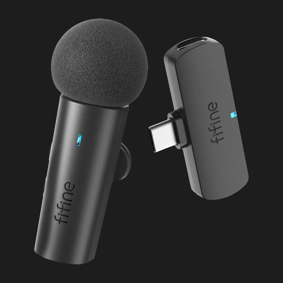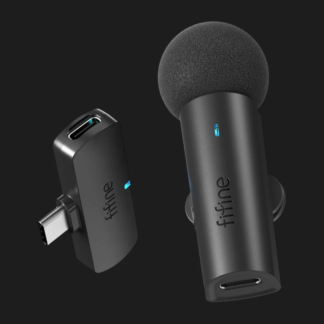 Fifine M6 использует петличные микрофоны, которые равномерно захватывают голос и передают его чётко и естественно. Такой формат позволяет комфортно записывать интервью, презентации, видеоблоги или учебные материалы. Система хорошо передаёт голос даже во время движения или изменения положения пользователя, что важно для динамичных съёмок. Благодаря продуманной конструкции микрофоны фиксируют основной звук, уменьшая влияние посторонних шумов во время записи.