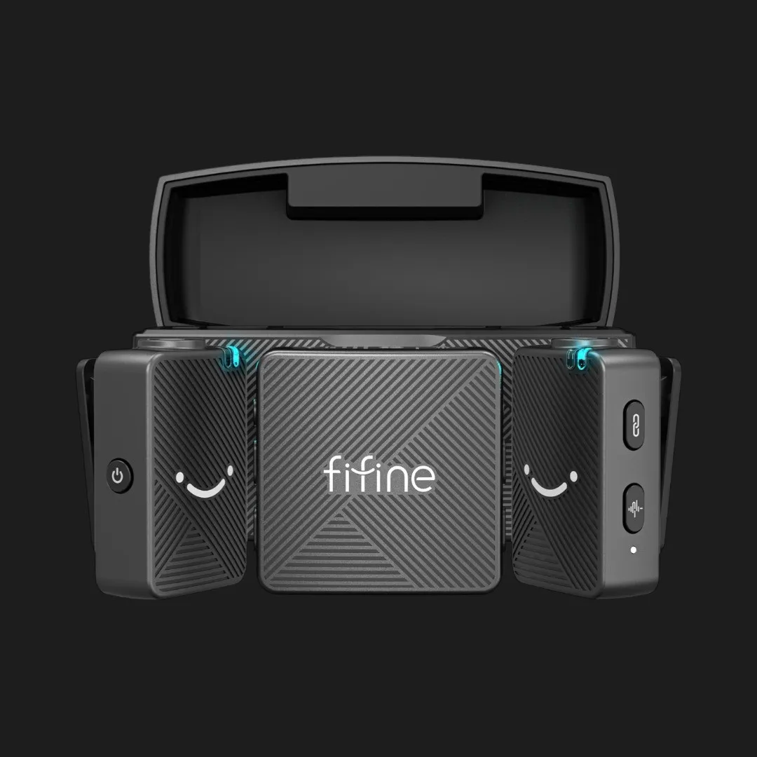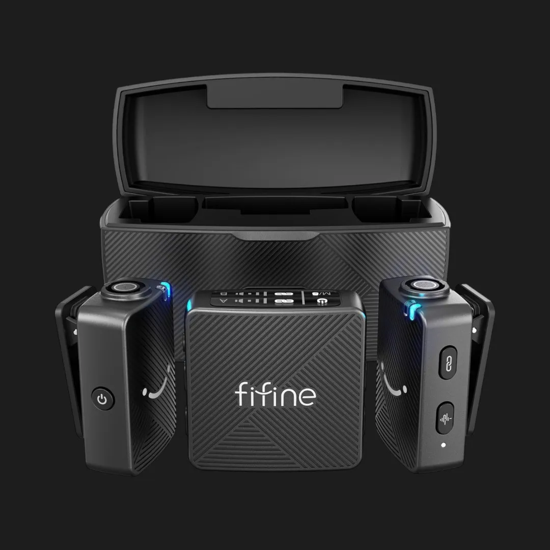 Микрофонная радиосистема Fifine M9 создана для удобной и качественной записи голоса во время съёмки видео, интервью, стриминга или подкастов. Компактный формат позволяет легко использовать её как в студии, так и во время выездных съёмок. Небольшие передатчики с клипсой быстро крепятся к одежде и не мешают во время записи. Благодаря беспроводному подключению пользователь получает свободу движений и может комфортно работать перед камерой или проводить интервью без лишних кабелей.