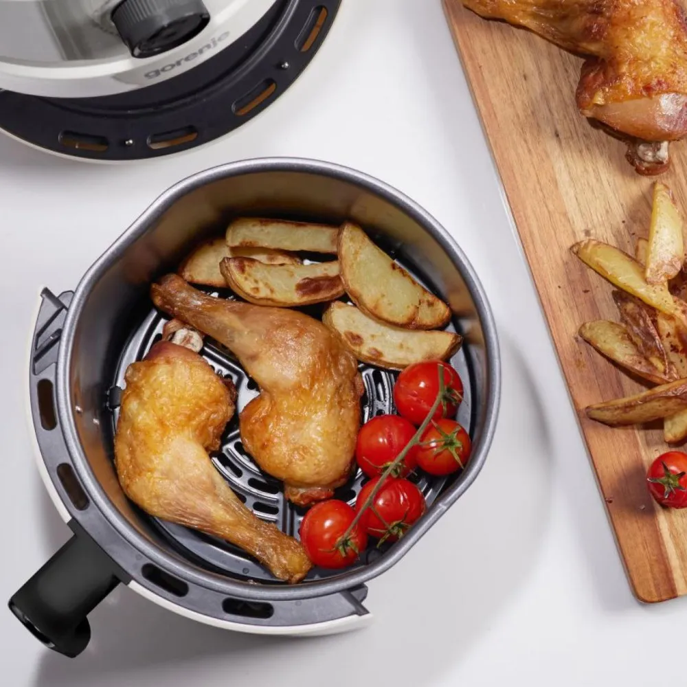 Одно из главных преимуществ мультипечи — возможность готовить с минимальным количеством масла или даже без него. Горячий воздух равномерно циркулирует внутри камеры, создавая эффект обжаривания, но без вредного избытка жира. Это отличное решение для тех, кто стремится перейти на более полезный рацион, сохраняя при этом любимые вкусы. С Gorenje AF1300XG блюда получаются более лёгкими, менее калорийными, но такими же аппетитными и ароматными.