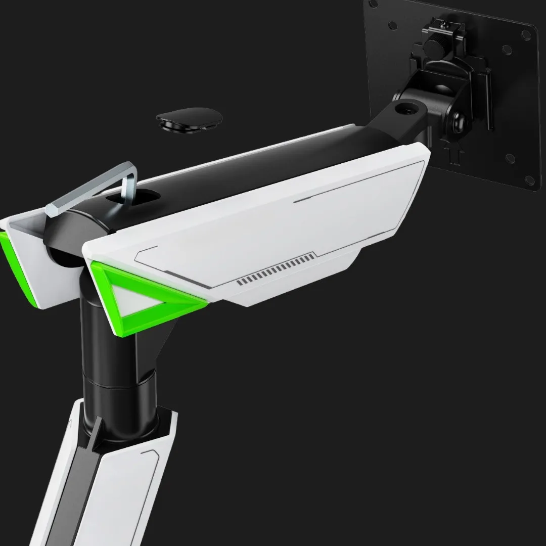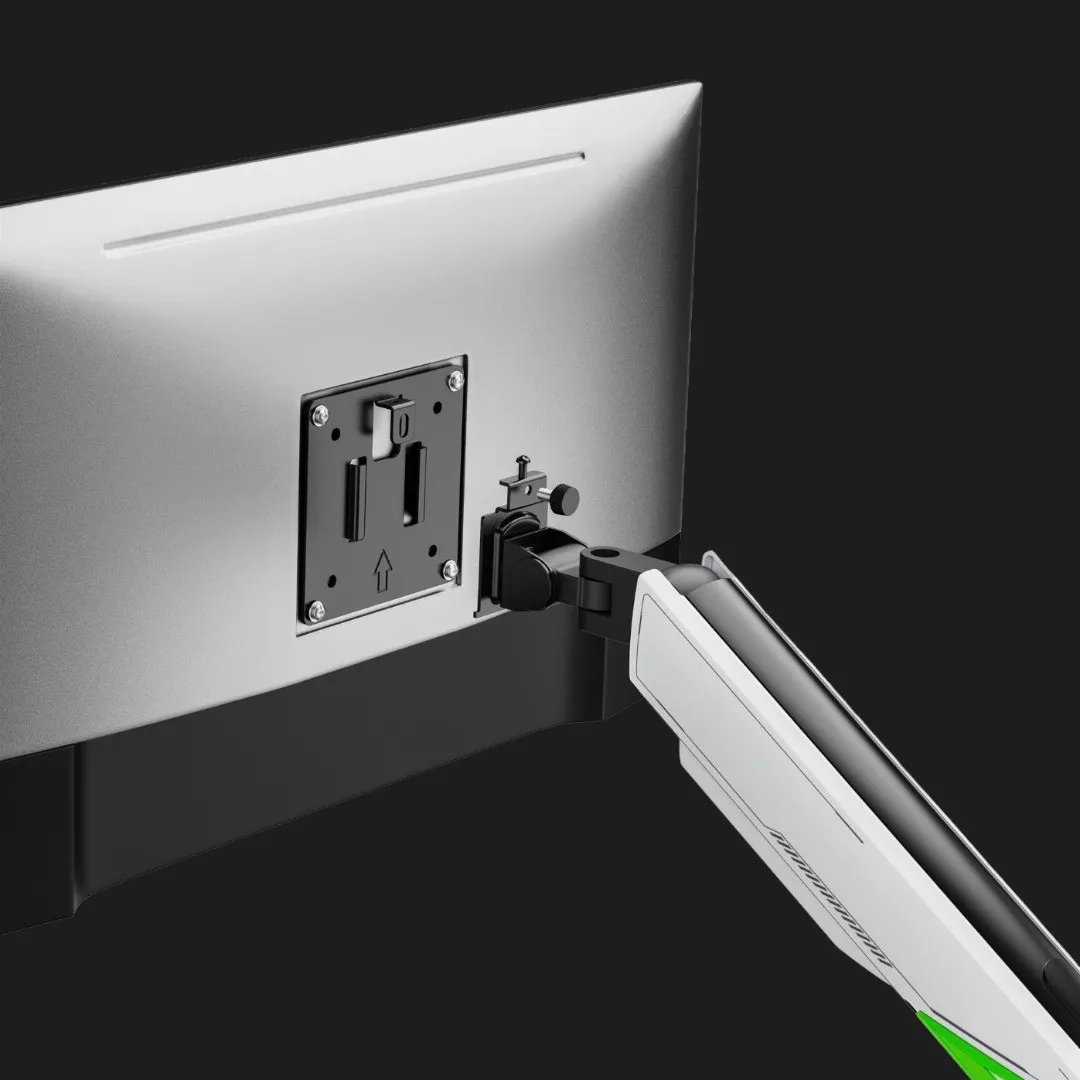 Конструкция крепления обеспечивает долговечность и устойчивость, а система регулировки позволяет легко настроить положение монитора под любые потребности. Удобство в использовании повышает комфорт и уменьшает усталость при длительном использовании. Кроме того, предусмотренная система кабель-менеджмента помогает аккуратно организовать провода, поддерживая порядок на рабочем столе. Благодаря этим преимуществам рабочее пространство становится более функциональным и привлекательным.