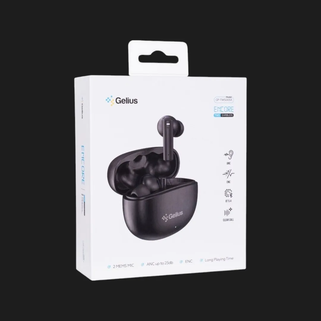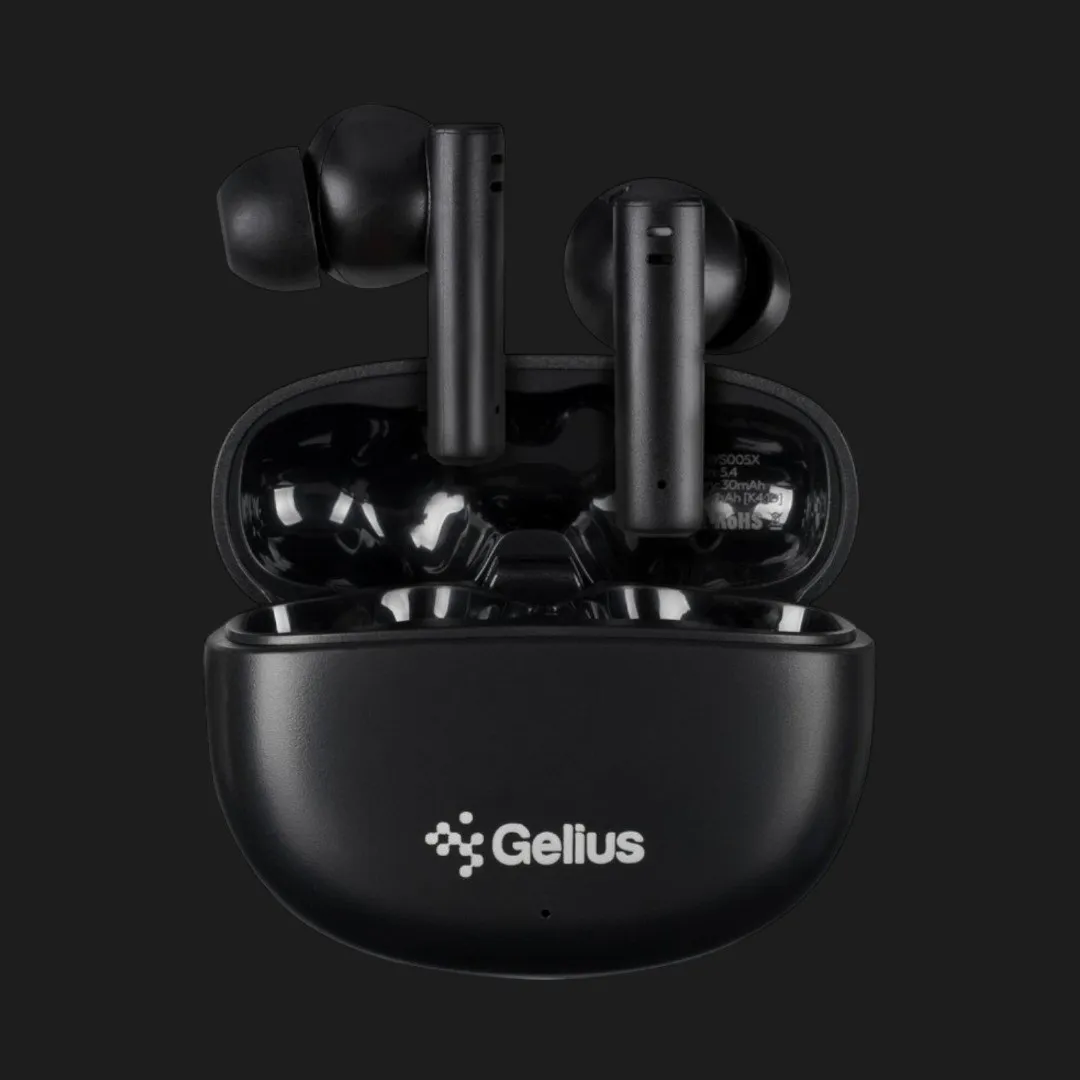 Наушники Gelius Encore GP‑TWS005X выполнены в черном цвете и имеют продуманный корпус, сочетающий эстетику и практичность. Их плавные линии и аккуратное расположение элементов создают чувство завершенности. Компактный зарядный кейс легко помещается в кармане или сумке, что делает их удобными для ежедневного использования. Материалы приятны на ощупь и в то же время крепкие, обеспечивая долговечность и надежность наушников.
