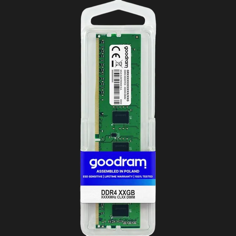 Оперативная память Goodram DDR4 8GB выполнена в стандартном форм-факторе DIMM, что обеспечивает совместимость с большинством современных настольных ПК. Установка не требует специальных навыков или сложных настроек — достаточно установить модуль в слот, и система автоматически начнёт работать с новым уровнем производительности.