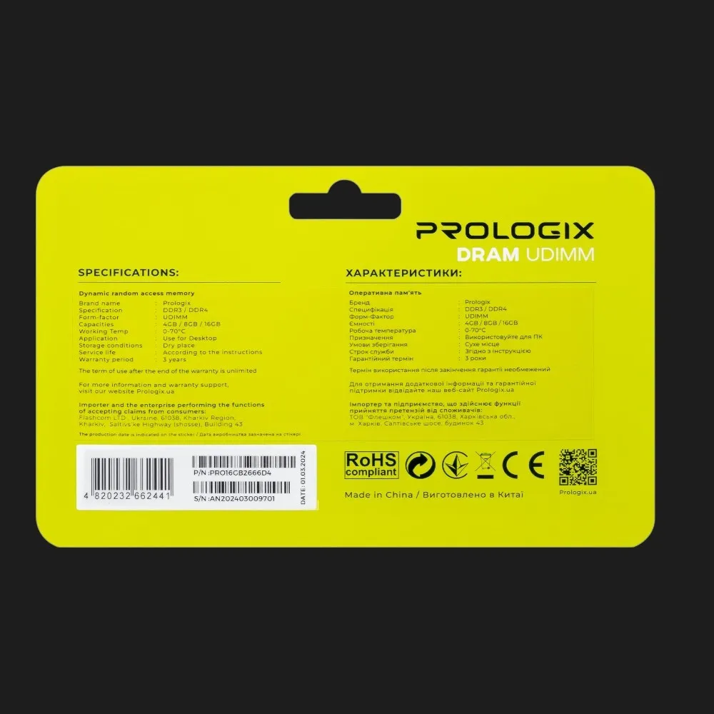 Модуль Prologix DDR4 16GB выполнен в формате DIMM, что делает его совместимым с большинством современных ноутбуков и компактных ПК. Установка проходит быстро и легко, без дополнительных настроек — после установки ноутбук сразу готов к работе. Это удобный способ апгрейда без замены других компонентов, который продлевает актуальность устройства и повышает его производительность на несколько лет.