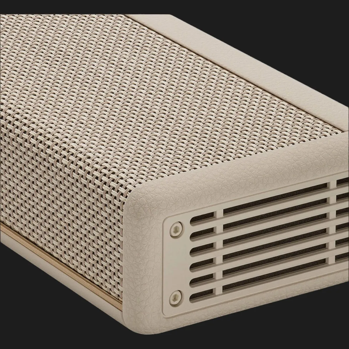Модель Marshall Heston 60 сохраняет культовую эстетику бренда, которая мгновенно приковывает взгляд. Корпус выполнен в узнаваемом стиле с текстурированным виниловым покрытием, металлической решеткой и лаконичными золотистыми акцентами.