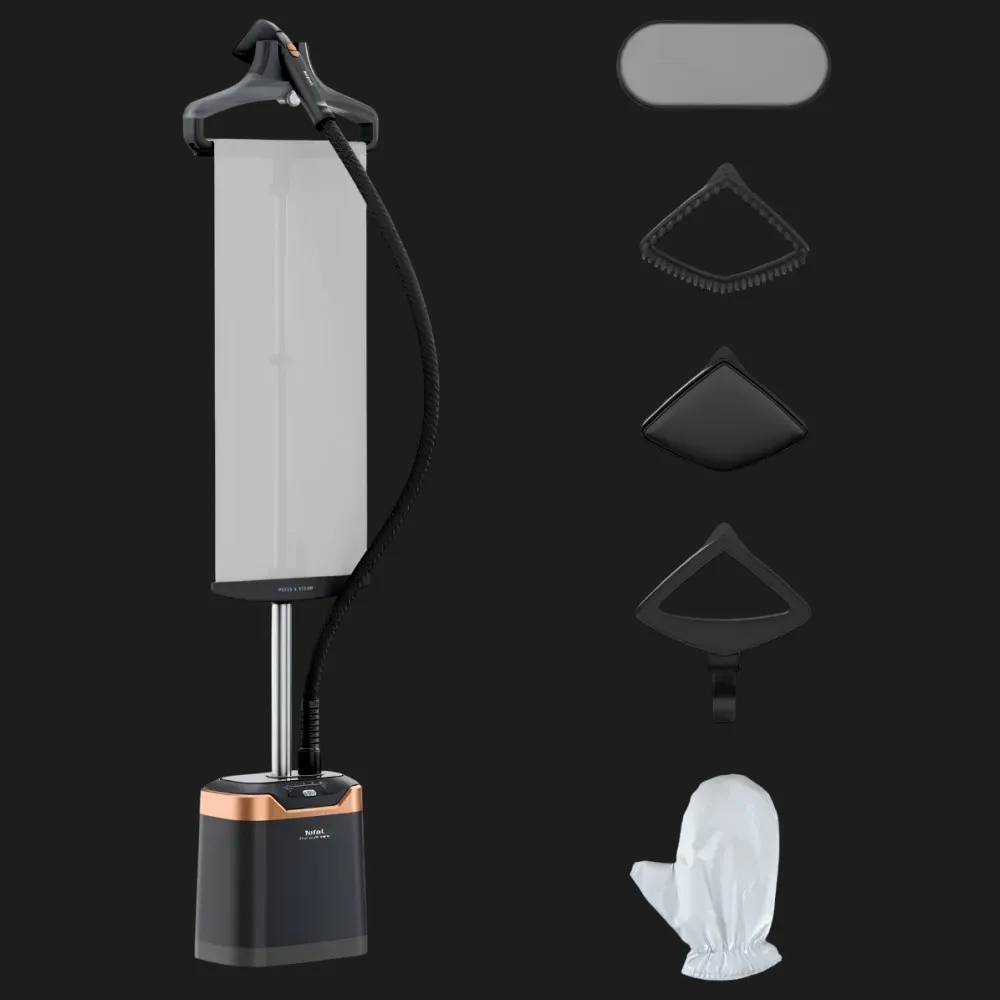 Вместе с отпаривателем вы получите набор аксессуаров, которые еще больше облегчают ежедневный уход за одеждой. В комплект входят щетка для плотных тканей, насадка для деликатных материалов и термостойкая перчатка для безопасного отпаривания. Встроенные колесики упрощают перемещение прибора по комнате, а компактный корпус легко вписывается в любой интерьер. Даже если у вас небольшое пространство — найти место для Tefal IT8480E1 будет просто.