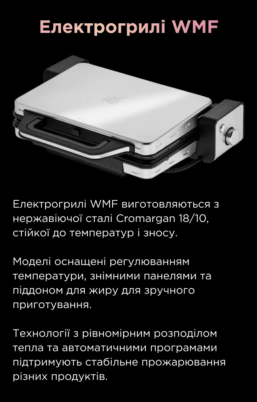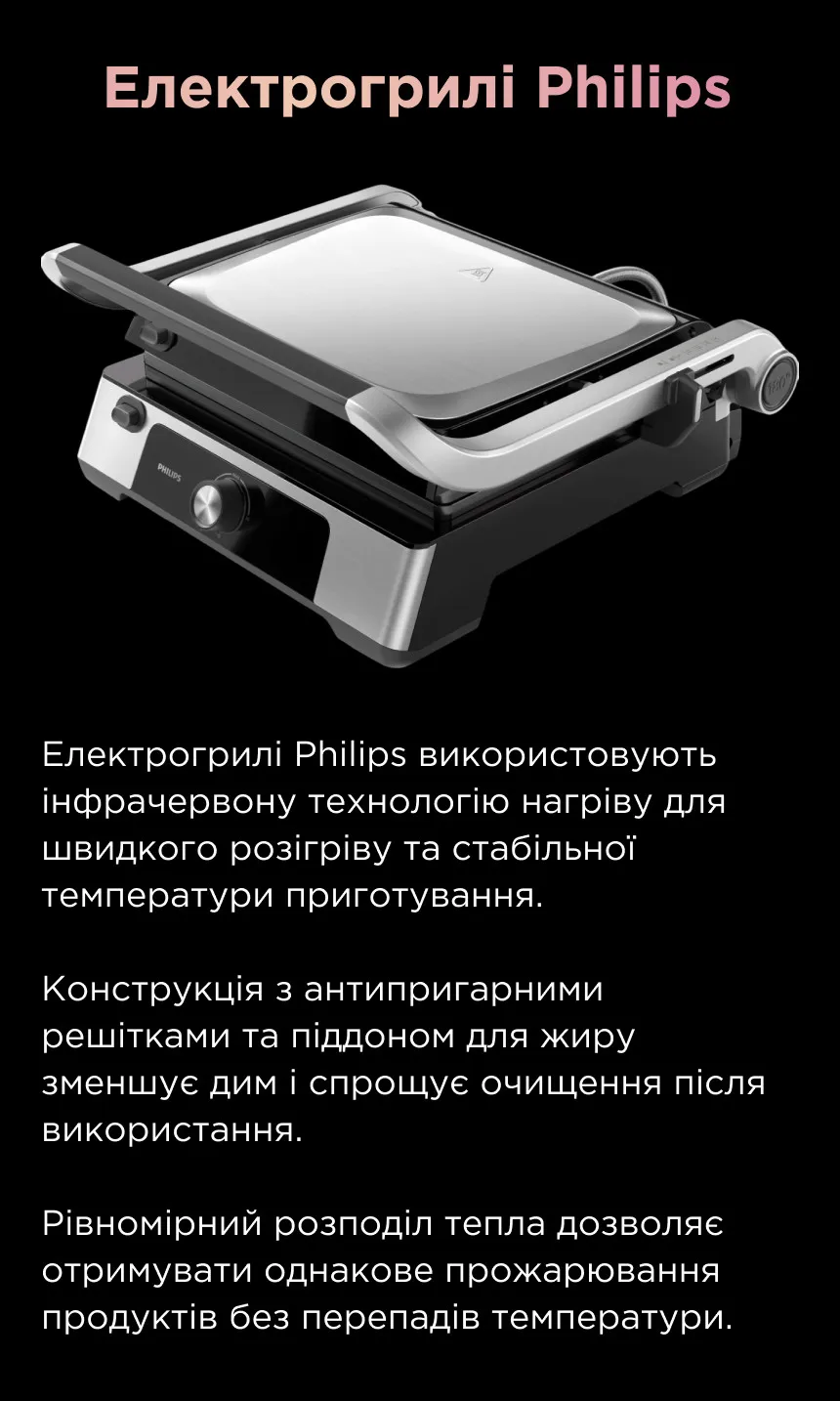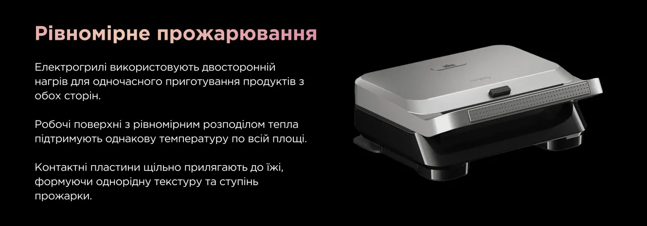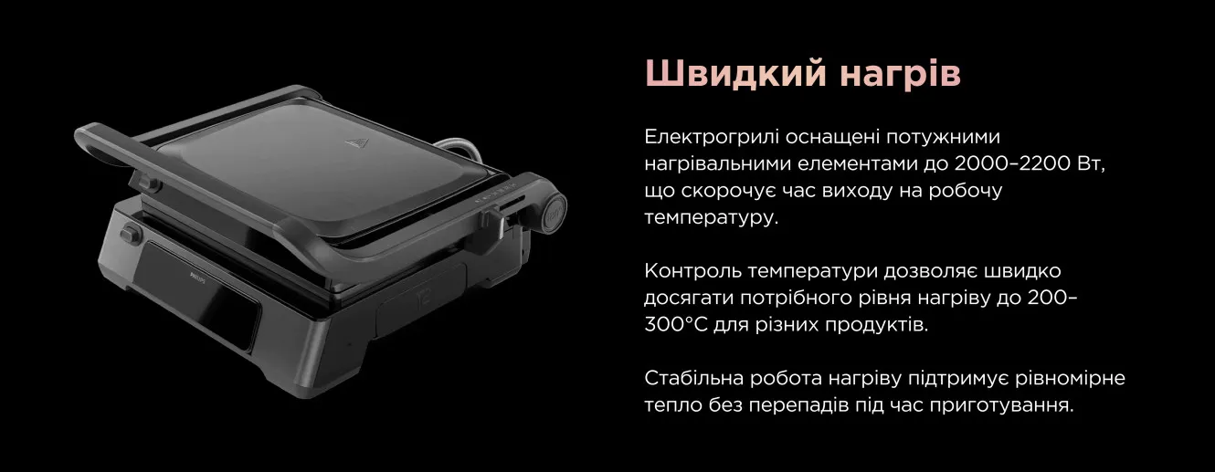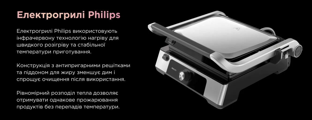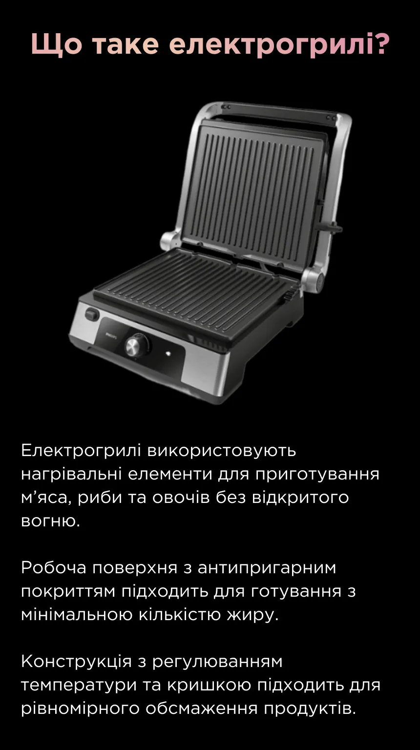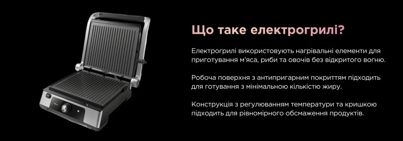 Електрогрилі повторюють принцип роботи класичного гриля, але використовують для нагрівання електроенергію, а не дрова чи газ, тому цілком підходять для приготування ваших улюблених страв у квартирі. Вони не створюють відкритого вогню та шкідливих речовин, які виникають під час процесу горіння, тому є абсолютно безпечними для використання в закритих приміщеннях.