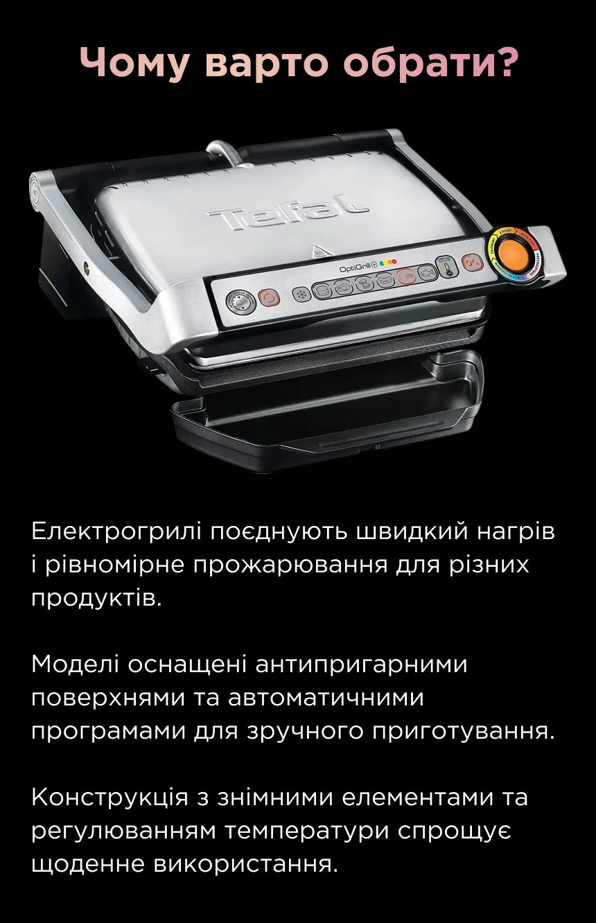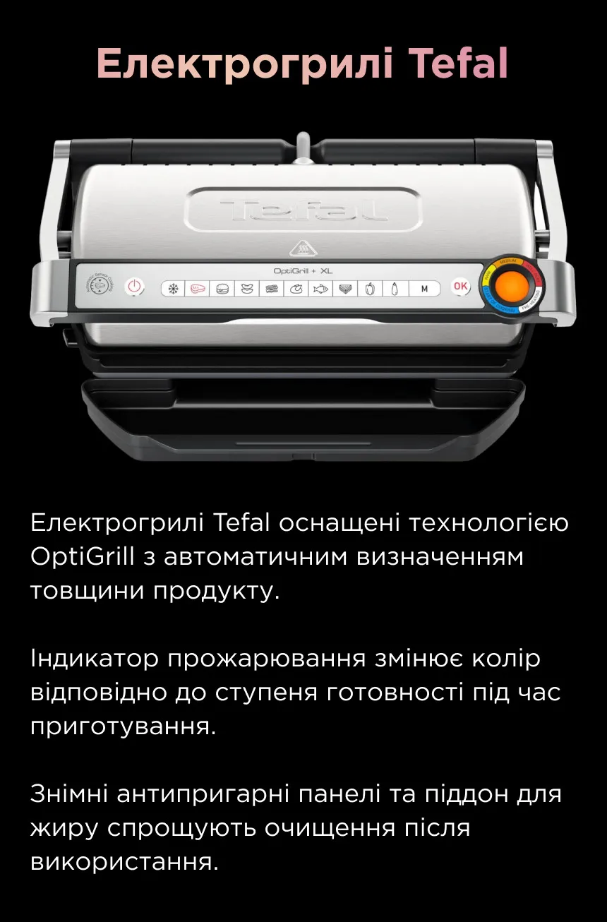Серія Tefal OptiGrill є чи найпопулярнішим електрогрилем останніх років, і такий попит на неї з'явився неспроста. Ця серія пропонує інноваційний підхід до приготування, який назавжди позбавить вас від здогадок, чи дійшли продукти бажаного прожарення, чи ще ні.